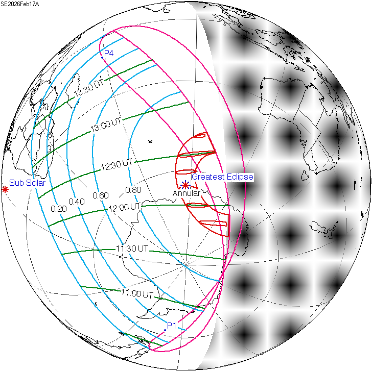 Banda de inelaritate va traversa doar Antarctica. Fazele parțiale vor fi vizibile și din sudul Americii de Sud (Argentina și Chile) și din sudul Africii (Africa de Sud, Mozambic și Madagascar).